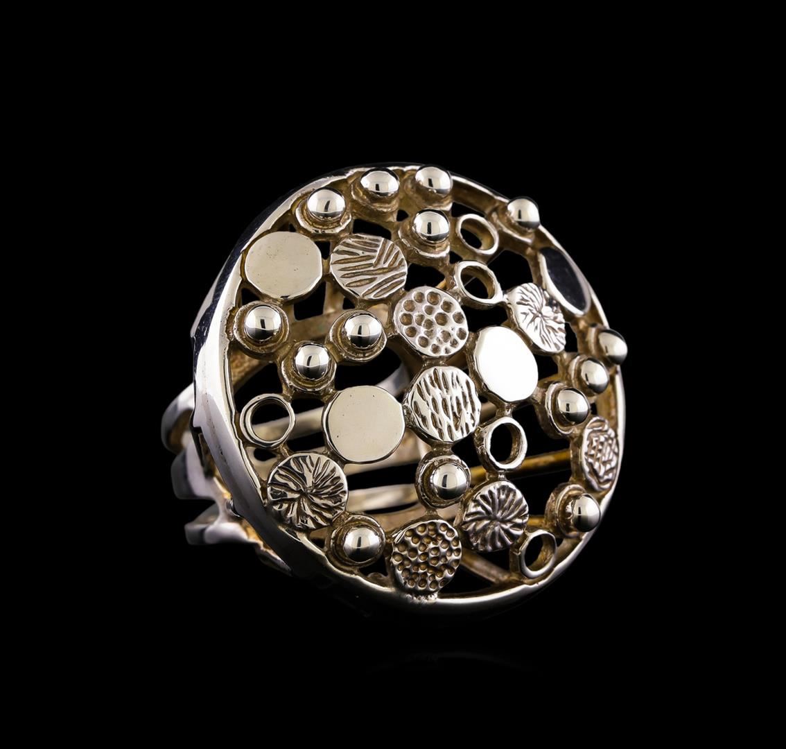 One of a kind high fashion sterling silver ring weighing 20.9 grams. This sterling silver promises a lasting shine.