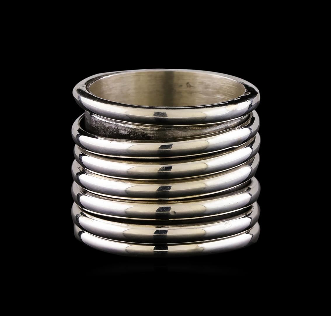 One of a kind high fashion sterling silver ring weighing 22.2 grams. This sterling silver promises a lasting shine.