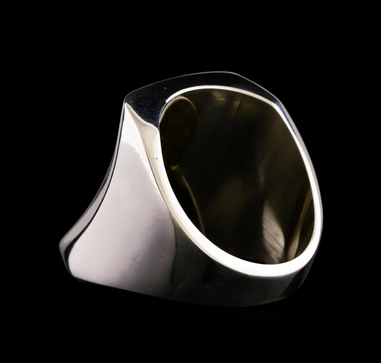 One of a kind high fashion sterling silver ring weighing 18.1 grams. This sterling silver promises a lasting shine.