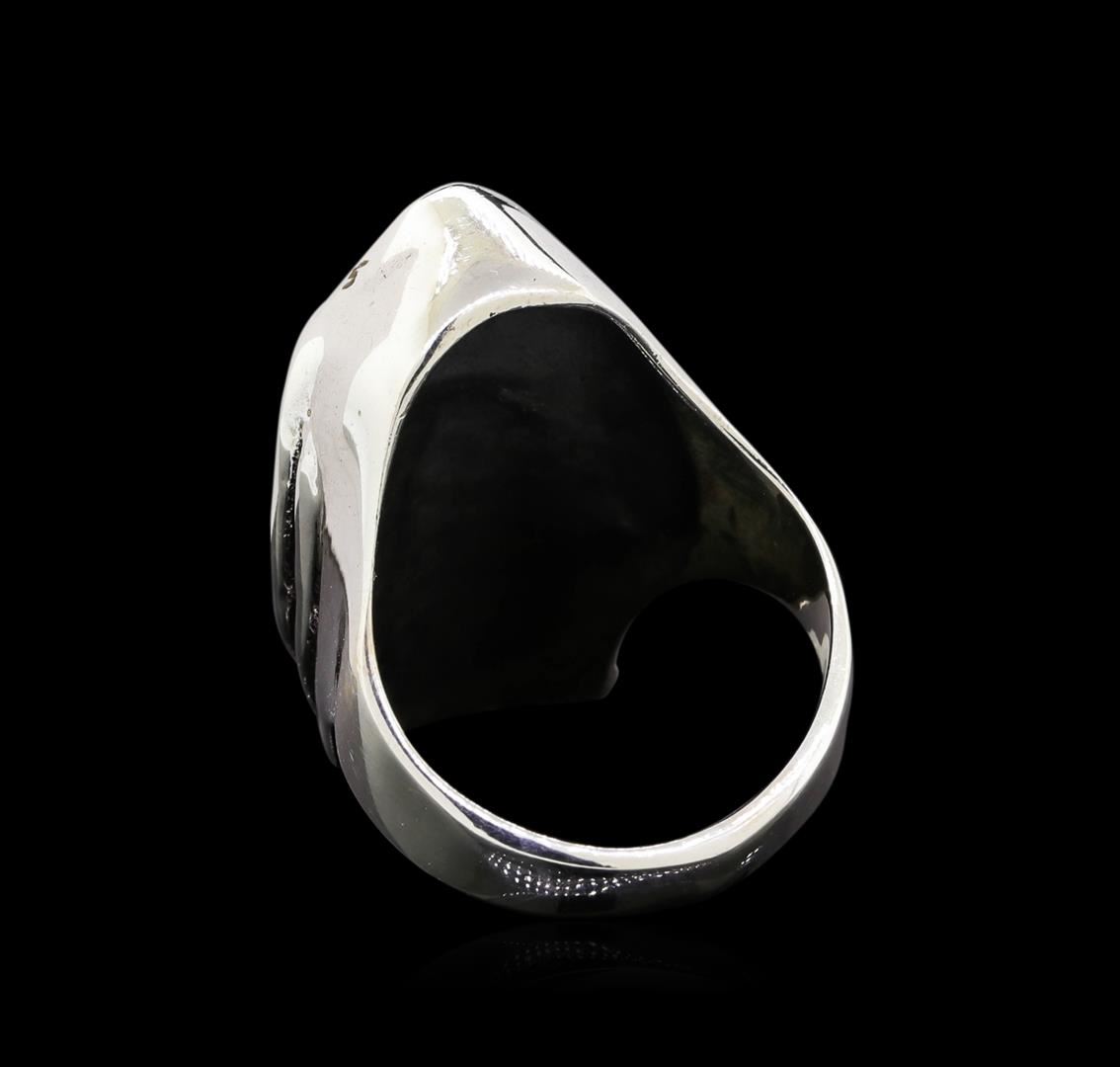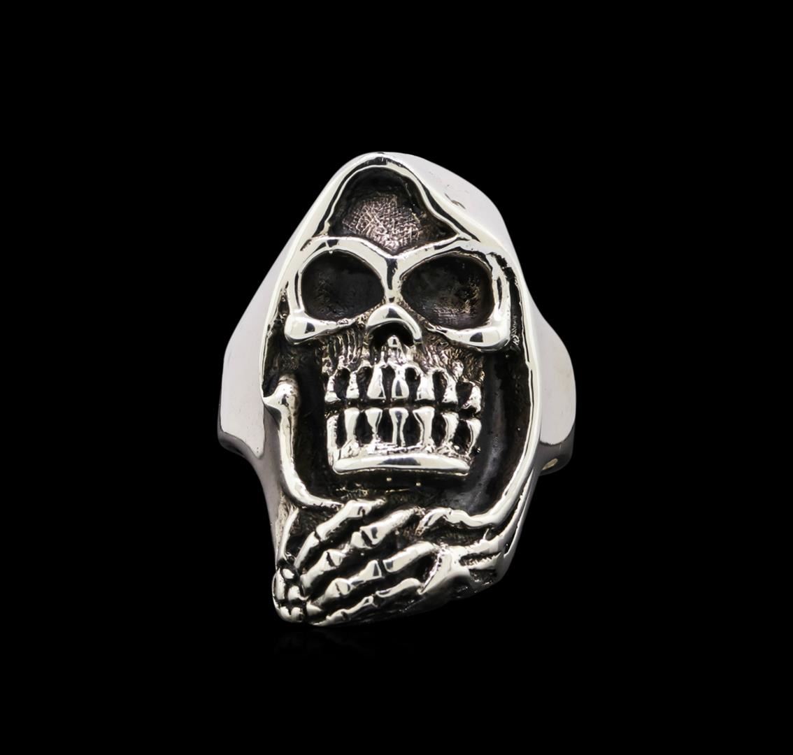 One of a kind high fashion sterling silver skull ring weighing 17.2 grams. This sterling silver promises a lasting shine.