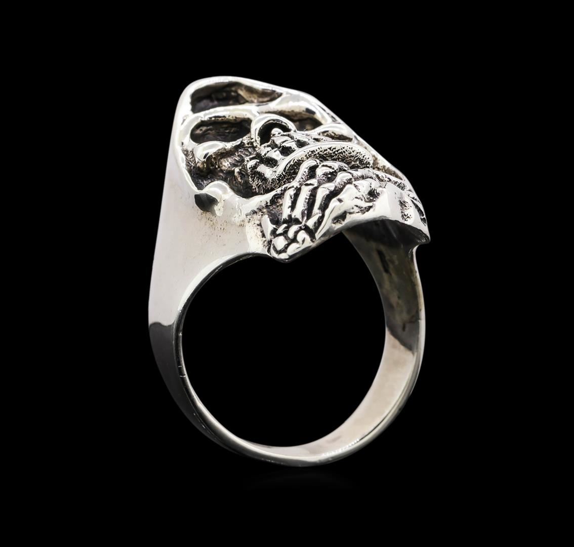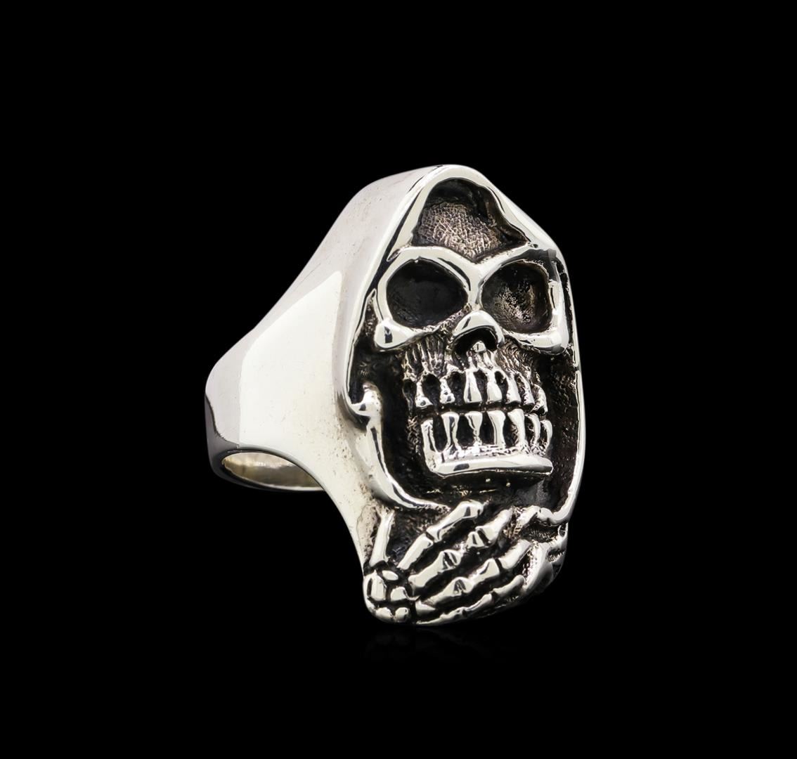 One of a kind high fashion sterling silver skull ring weighing 17.2 grams. This sterling silver promises a lasting shine.