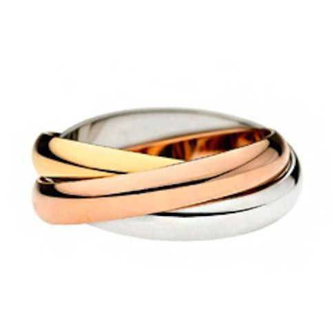 Classic Style Three Tone Trinity Band, 18K gold plated, size 8