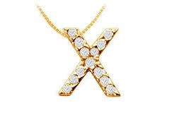Thirteen brilliant-cut round diamonds are prong-set in a timeless classic letter X to wear your personality in a more simple yet elegant way. Made in 14K yellow gold this initial pendant has a total weight (TDW) of 0.15 ct.