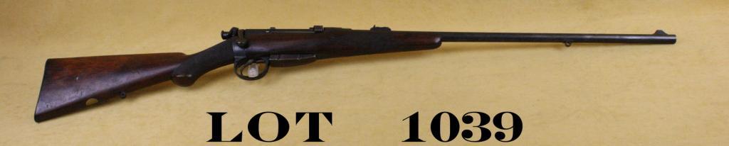 Classic early big-game bolt-action sporting rifle on Enfield action by B. S. A. in .375 express caliber marked for Cordite loads. 3-leaf rear sight, eyelets for European hook type sling swivels, classic early 19thcentury styling in overall good condition with good bore, good action, good wood. Front sight reduced. This one has that African look. .375 Express pre-dates and should not be confused with .375 H&H magnum which isconsiderably more powerful and later in the period. Est: $400 - $800
