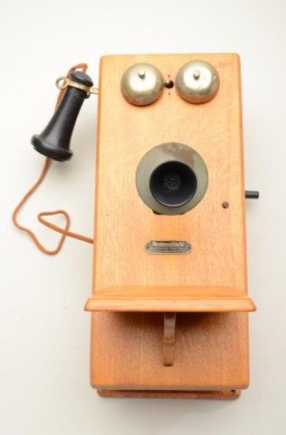 Classic oak old time wall phone by Montgomery Ward & Co. in overall very good to fine condition with complete interior per consignor; would make a great decorator. Est.: $200-$400.