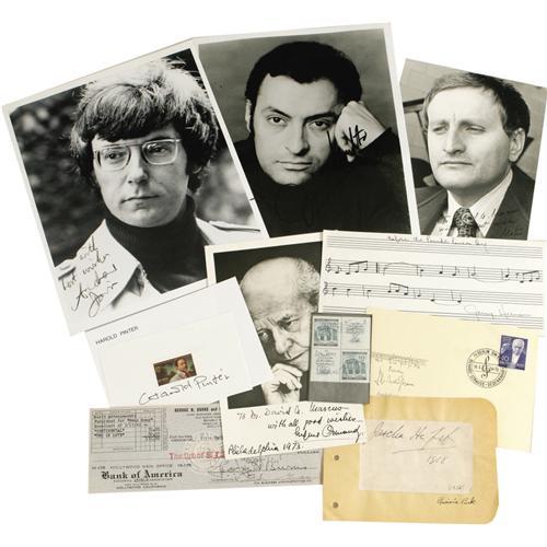 <B>Classical Actors, Writers, and Composers Autograph Set.</B></I> Includes a personal check dated March 31, 1942, and signed by George Burns, a first day cover signed by Harold Pinter, a b&w 5" x 8" photo inscribed and signed by Eugene Ormandy, a section of handwritten music for "Before the Parade Passes By" signed by Jerry Herman, a b&w 6" x 8" photo inscribed and signed by Eduardo Mata, a b&w 8" x 10" photo signed by Zubin Mehta, a b&w 8" x 10" photo inscribed and signed by Andre Previn, an autograph album page signed by Jascha Heifitz, and a first day cover signed by Richard Strauss. In overall Very Fine to Excellent condition.<BR><BR><b>Shipping:</b> Flat Material, Small (<a target="_blank" href="http://www.heritageauctions.com/common/shipping.php">view shipping information</a>)