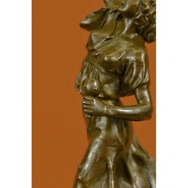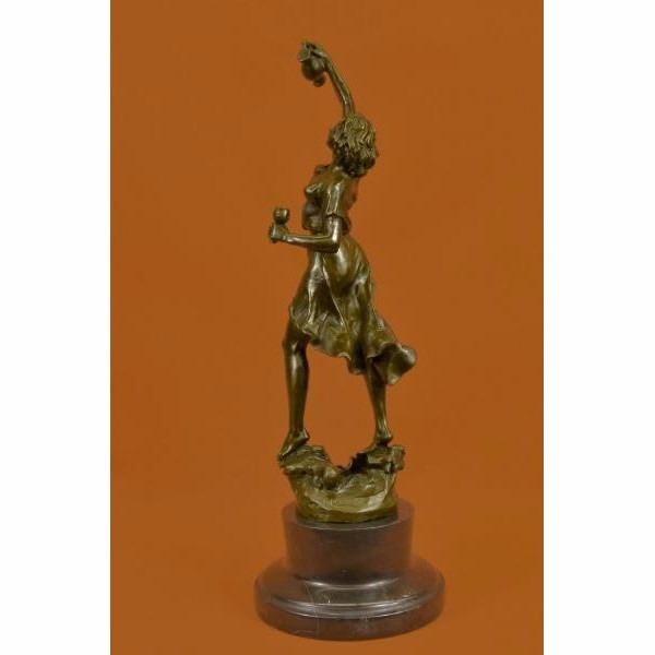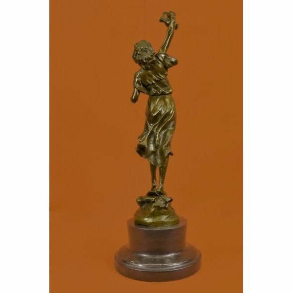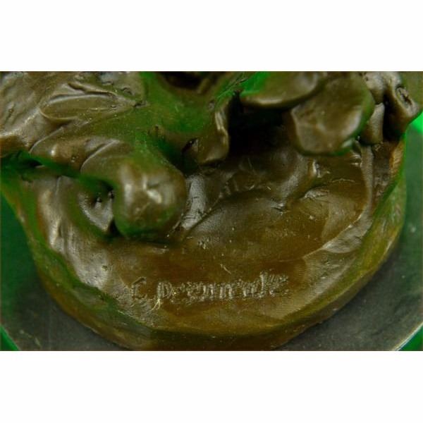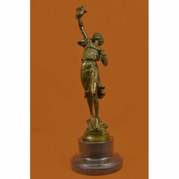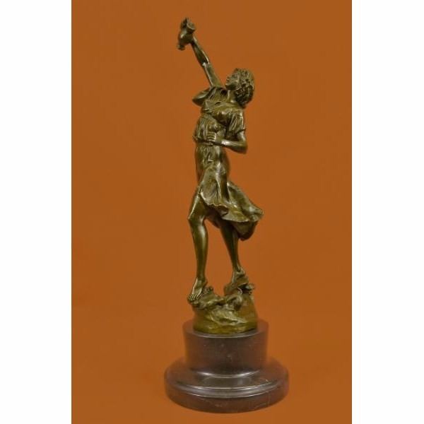 A classical bronze sculpture depicting a lady holding a jug and cup of vine. The bronze sculpture was produced using the lost-wax technique allowing the artist to create beautiful and realistic details in his plumage. It is coated in a brown patina finish for preservation and mounted upon a black marble base and is signed C,. Desmeure. Condition: This sculpture is in perfect condition. Bronze Dimensions with Marble Base:Height 18" x Width 6" Marble Dimensions:Diameter 6" Height without base: 15" Weight :12 LBS Inventory : 68XNCH3135B6986