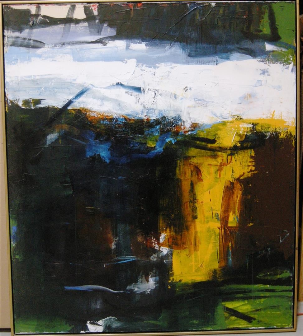 Danish-Ukrainian artist, Sergei Sviatchenko, offers a striking, vertical abstract in this oil on canvas. The painting measures 59 x 51; framed image measures approx. 65 x 67.