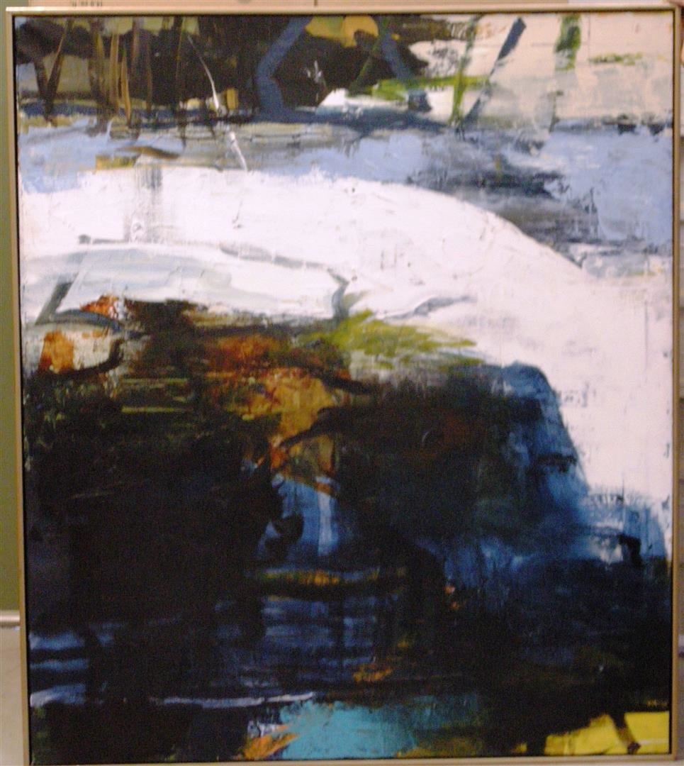 Sergei Sviatchenko's "Classical Dark Transformation II" directly complements his "Transformation I" in this vertical abstract. The painting measures 59 x 51; framed image measures approx. 65 x 67.
