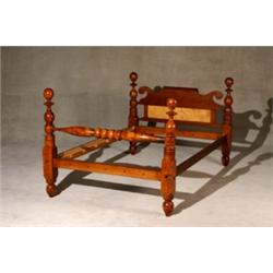 Classical Figured Maple and Cherry Double 'Cannonball' Bedstead