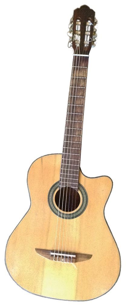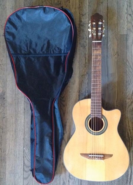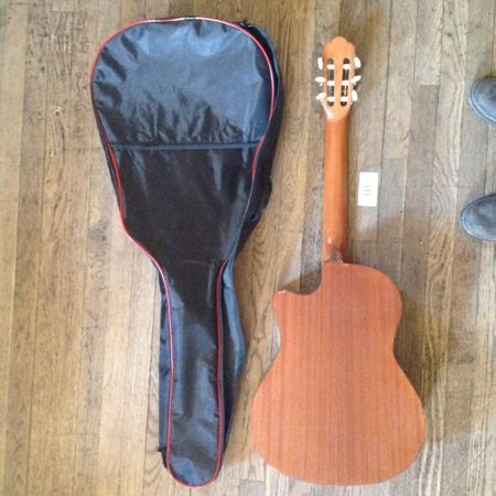 Ca. 1970s, Six-string single cutaway classical guitar, with travel bag. Playable condition. 39" x 14-3/4" x 3-3/4"