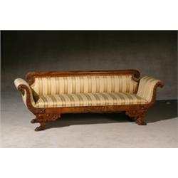 Classical Mahogany Sofa, Philadelphia or New York, Circa 1825, Repairs and cracks to veneered...