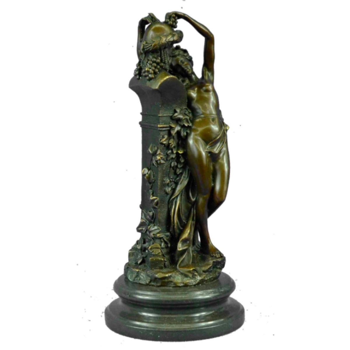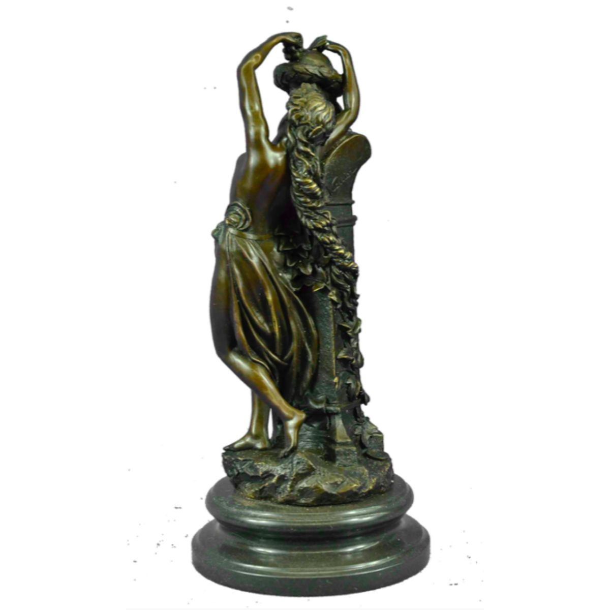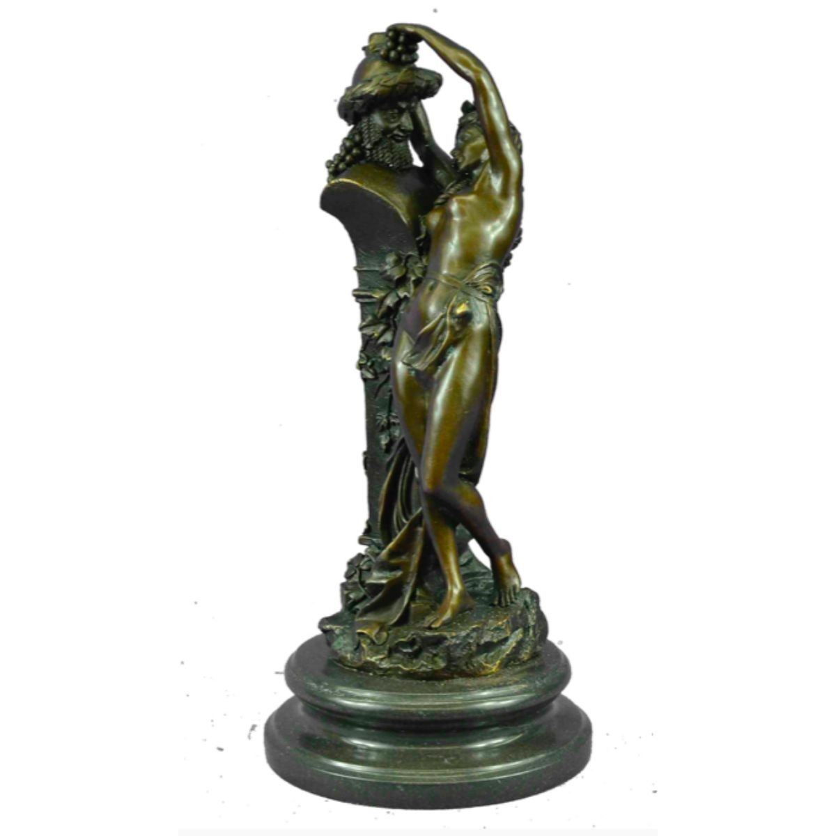 "Frustration" classical style maiden & satyr with grapes sculpture. Lost wax casting method bronze, with brown patina, mounted on a marble base.  14" H X 6" W. 13lbs.Â