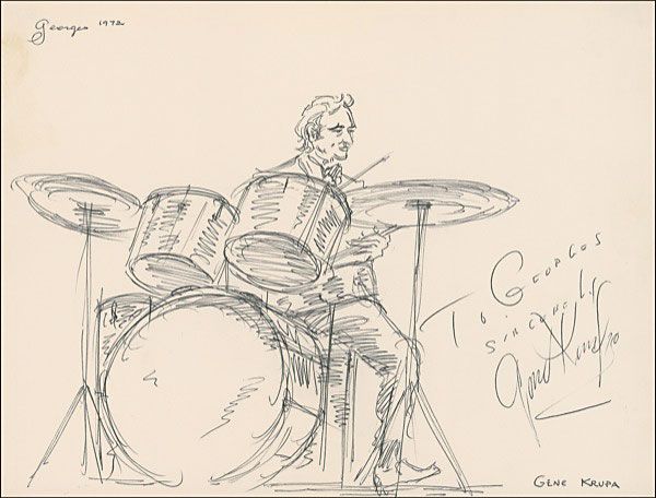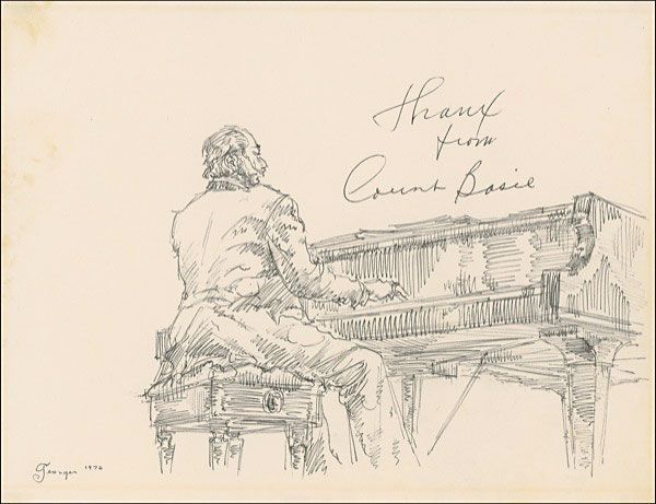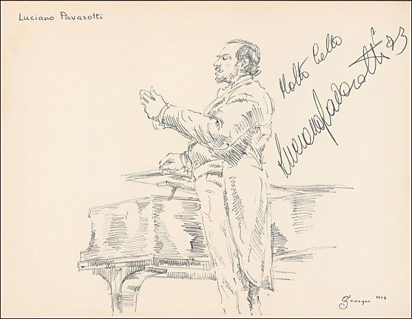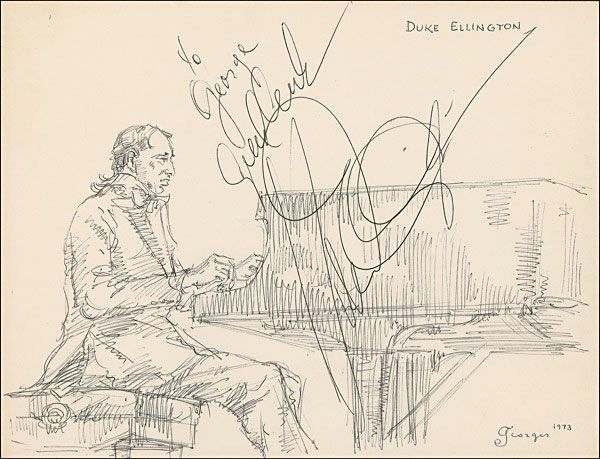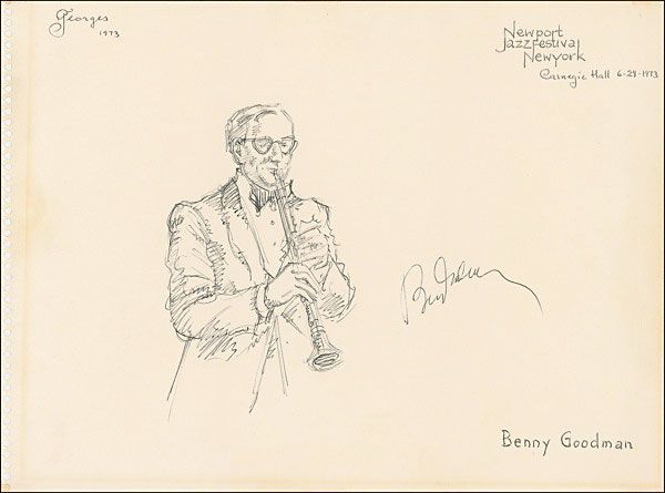 Indeed, the most remarkable feature of Georges’s oeuvre, apart from the astounding range of performers who gladly expressed their approval and appreciation by signing, is the skill with which the drawings are accomplished. Longtime autograph collectors are only too aware of the curious genre of celebrity-signed ‘fan drawings,’ amateur efforts whose artistic merit seldom measures up to their sincerity. Georges’s work, on the other hand, not only demonstrates a consummate skill in capturing the likeness of his subject, but also the spontaneity and excitement of the moment.