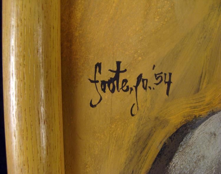 Here is a painting portraying a Roman figure, probably an athlete, ready for a game at the Colliseum. . Artist: Signed, left, center Medium: Acrylic on boardImage size: 12 x 39 1/2 inchesFraming: In mid century modern style light wood frameFrame size: 15 x 42 1/2 inchesCondition: Excellent