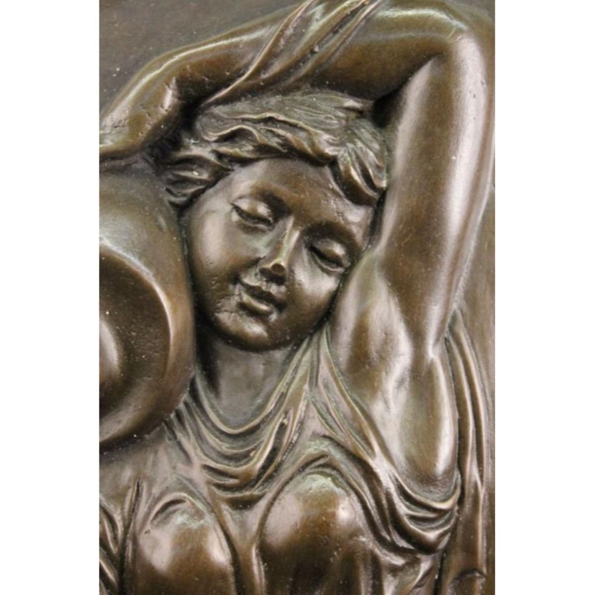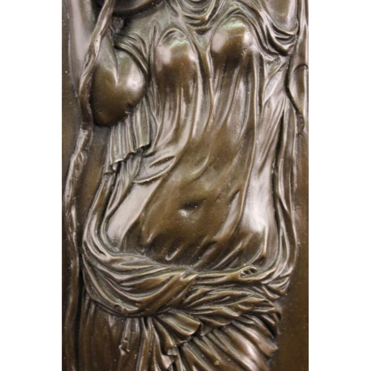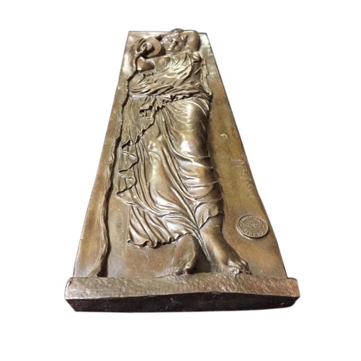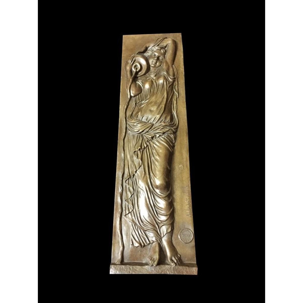 Bronze wall relief plaque depicting a classical woman holding a jug over her shoulder. Lost wax casting method bronze. 19" H X 5" W X 1/2" thick.