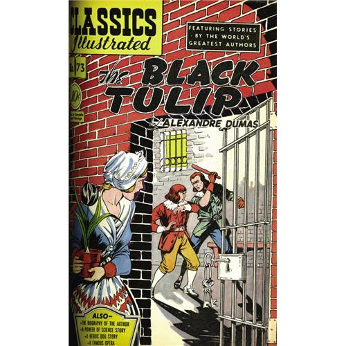 <B>Classics Illustrated #71-84 Bound Volume (Gilberton, 1950-51).</B></I> All but one of these issues are original editions! The issues are #71 ("The Man Who Laughs"), 72 ("The Oregon Trail"), 73 ("The Black Tulip" -- only printing), 74 ("Mr. Midshipman Easy" -- only printing), 75 ("The Lady of the Lake"), 76 ("The Prisoner of Zenda"), 77 ("The Iliad"), 78 ("Joan of Arc"), 79 ("Cyrano de Bergerac"), 80 ("White Fang" -- this is a second edition), 81 ("The Odyssey"), 82 ("The Master of Ballantree"), 83 ("The Jungle Book"), and 84 ("The Gold Bug and Other Stories"). Although most copies appear to have been VF or better before trimming and binding, a couple of issues had been folded (79 and 81), leaving light creases in the front covers. Overstreet VG 4.0 value for group = $370.