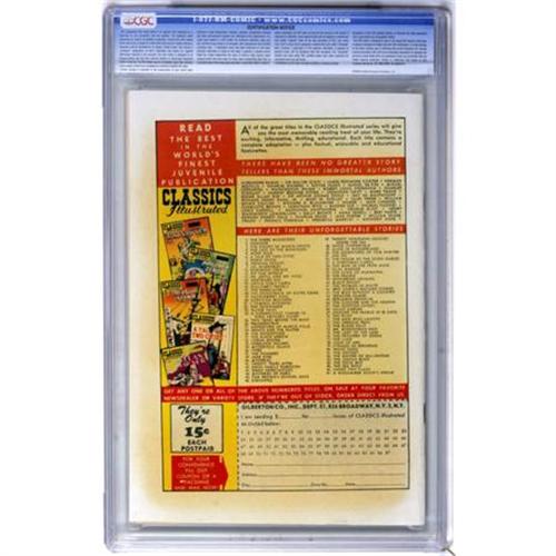 <B>Classics Illustrated #86 Under Two Flags First Edition - Vancouver pedigree (Gilberton, 1951) CGC NM- 9.2 White pages.</B></I> Under Two Flags. Alex Blum cover and Maurice del Bourgo art. First edition. Highest grade yet assigned by CGC for this issue. Overstreet 2007 NM- 9.2 value = $70. CGC census 6/07: 1 in 9.2, none higher.<BR><BR><b>Shipping:</b> Comics - Slabbed (certified) (<a target="_blank" href="http://www.heritageauctions.com/common/shipping.php">view shipping information</a>)