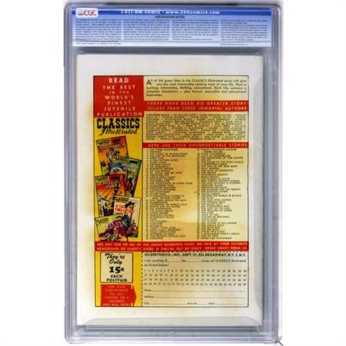 <B>Classics Illustrated #90 Green Mansions First Edition - Vancouver pedigree (Gilberton, 1951) CGC VF+ 8.5 White pages.</B></I> Green Mansions. Alex Blum cover and art. First edition. Highest grade yet assigned by CGC for this issue. Overstreet 2007 VF 8.0 value = $61; VF/NM 9.0 value = $75. CGC census 6/07: 1 in 8.5, none higher.<BR><BR><b>Shipping:</b> Comics - Slabbed (certified) (<a target="_blank" href="http://www.heritageauctions.com/common/shipping.php">view shipping information</a>)
