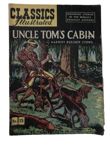 #15 – Uncle Tom’s Cabin by Harriet Beecher Stowe Condition: Fair Back cover torn with creases through the front. A powerful adaptation of Stowe’s anti-slavery classic, reflecting its emotional depth and historical significance.