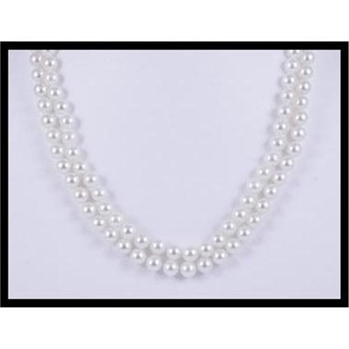 Classy necklace with 12 round cut diamonds set in 14K white gold and 2 strands of cultured pearls (6 millimeters). The 18 inch long necklace has a clasp that measures 21.3 millimeters (0.84 inches).