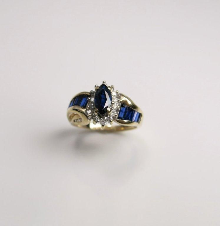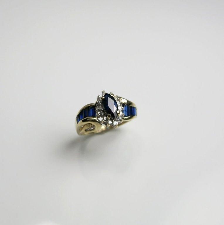 With 11 sapphires and diamonds total combined weight approx 2.00 carats set in 10 karat white gold.