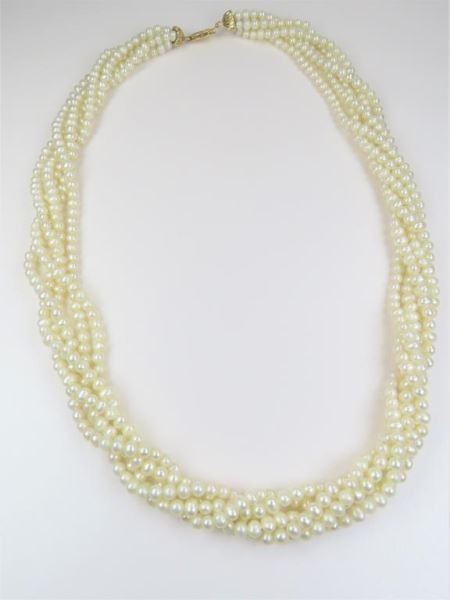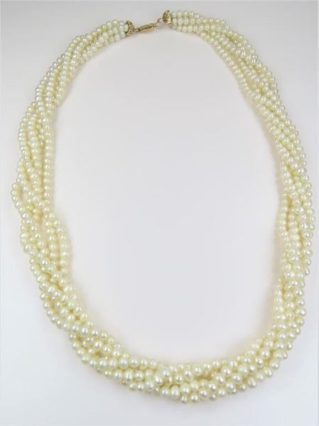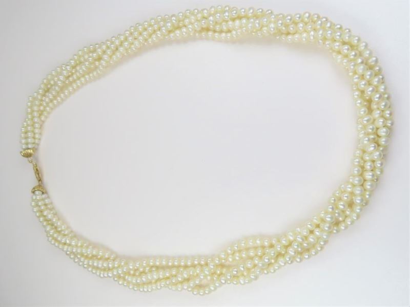 featuring 5 strands of Ivory Pearls with 14 karat yellow gold clasp.