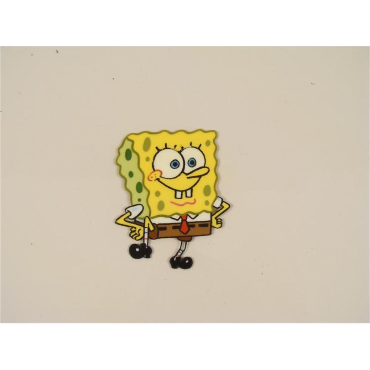 This original animation cel is from the Nickelodeon TV show SpongeBob Squarepants. The story takes place under the deep blue sea in Bikini Bottom, where SpongeBob resides. SpongeBob, who is a yellow, porous sponge, is your typical happy-go-lucky character, as he is always cheerful and enjoys making people laugh. Patrick Star, SpongeBob's neighbor who is a starfish, is your average children's show idiot, as he boasts knowing nothing and is often getting himself into ridiculous situations. Between the homes of these two lies the home of the miserable Squidward, a squid, who is known for being grouchy and playing tricks on SpongeBob and Patrick. Both SpongeBob and Squidward work at the Krusty Krab, a fast food business run by the greedy money-loving Mr. Krabs, a crab, the arch rival of the evil, possibly misunderstood, Plankton. Another neighbor, Sandy Cheeks, an athletic squirrel who normally wears an astronaut's space suit, was introduced in "Tea at the Treedome." She spends most of her time inventing and experimenting. * SpongeBob is classy * Original Production Animated Cel Overall Size of Cel: 10 1/2" x 12 1/2" Very Good ConditionThis is an original hand-painted cel set-up used in the production of an episode of "SpongeBob SquarePants." Each one-of-a-kind set-up represents a slight change in position of the characters. When individually photographed and projected in rapid succession, the images appear to move. * To create production cels, the original animator's drawing is transferred onto an acetate cel (by hand-inking and/or photo copying). The cel is then hand-painted on the reverse side. * The cel is ready to be matted and framed. The animator's notations are at the bottom of the cel. *