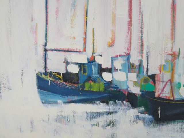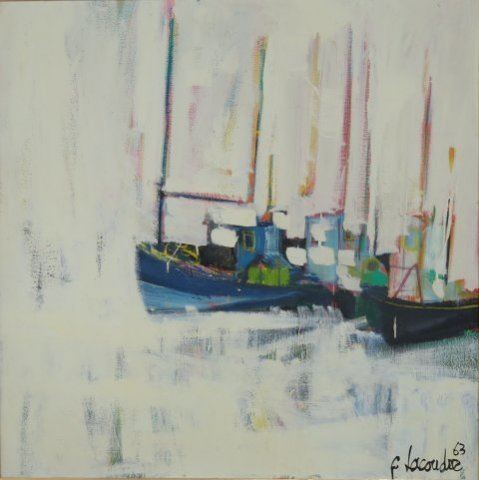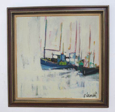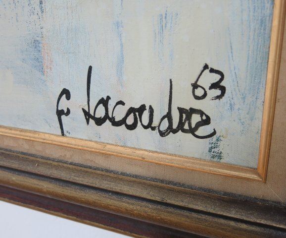 Oil on canvas. Framed. Signed & dated 1963 lower right. Claude Lacoudre, French (1935-1988). Approx. 32" x 32" unframed, 39" x 39" framed. Property of a Bernardsville, NJ collection. (4069)
