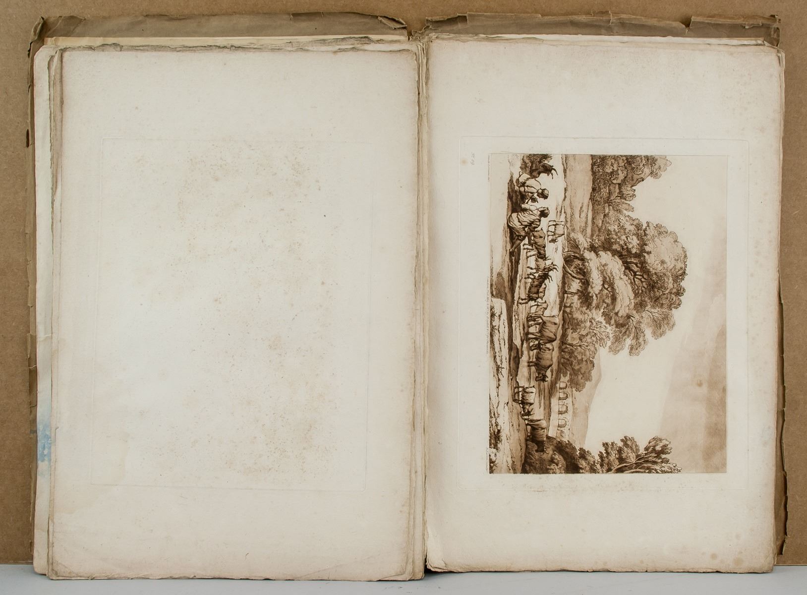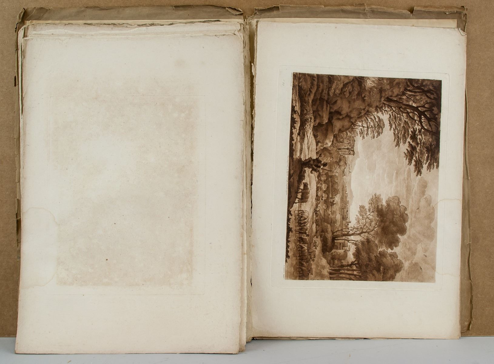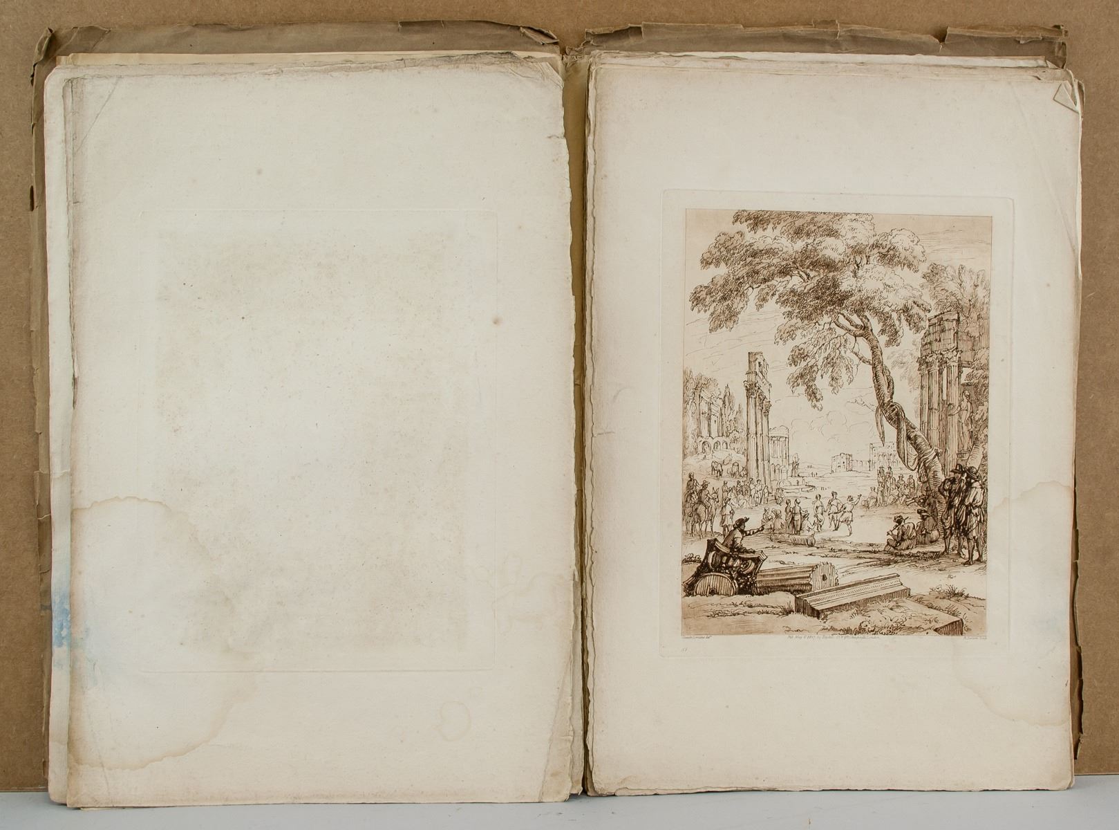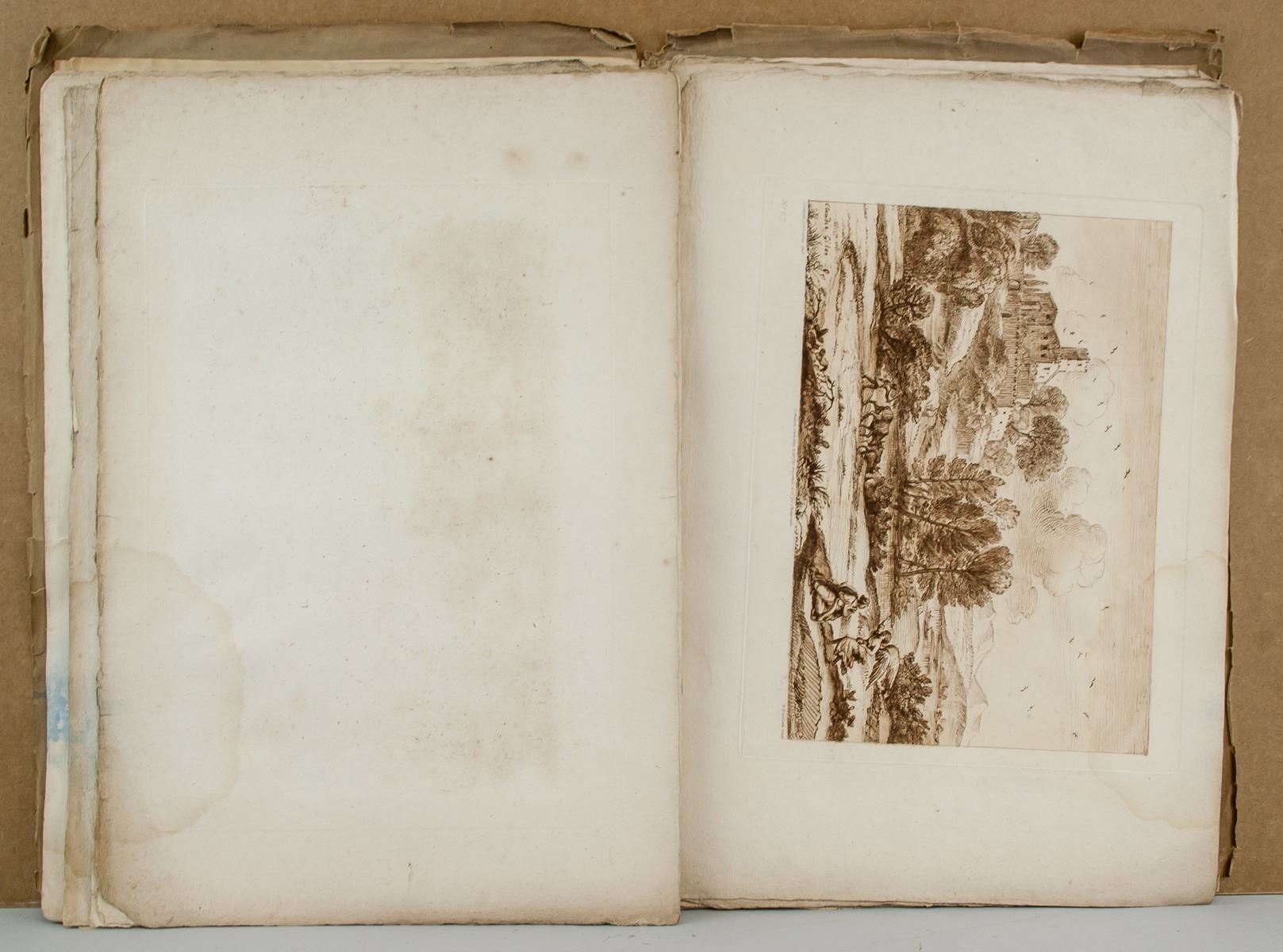 Featuirng 22 (Twenty-two) Liber Veritatis (Book of Truth) etchings by Claude Lorrain (French, 1600-1682). 46 x 31 cm (18.1 x 12.2 inches) Claude Lorrain made paintings in which the sun, earth, and water seem to reverberate with emotion. His name is inseparable from seventeenth-century landscape painting, his works characterized by a Baroque classicism which is especially evident in his depiction of antique architecture, and his emphasis on dramatic contrasts of light and shade. More often than not, Claude's works were paeans to the beauty of nature rather than portrayals of grand human virtues - as was more common for painters of his style and generation - but they were nonetheless generally representations of historical or mythical scenes. At a time when landscape painting was still far from being considered a significant genre, he thus laid the foundations for the historical landscape tradition that would come to dominate French and English painting for at least 150 years.
