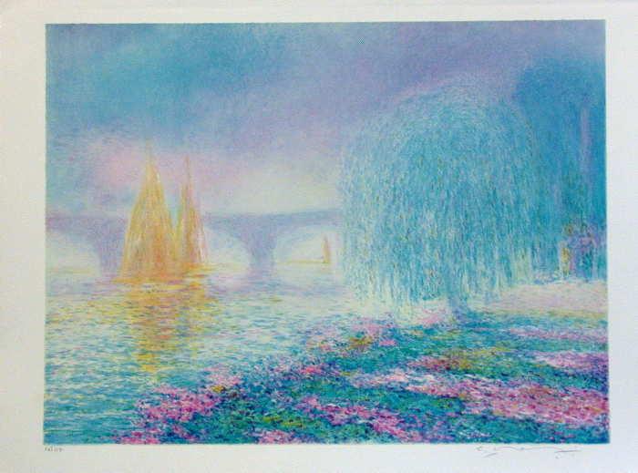 Original, hand drawn lithograph of the bridge over the River Yonnes in France by the well known contemporary European artist, circa 1985. Signed in pencil by the artist and numbered 147/170. 22”x30” on Arches paper. A Certificate of Authenticity will accompany this work. Add domestic shipping of $20 or international depending upon location .
