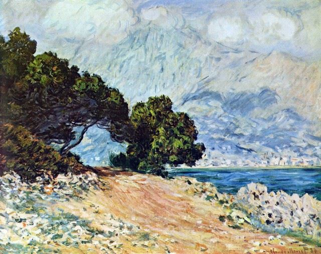 Artist: Claude Monet - Title: Cape Martin in Menton - Medium: Fine Art Reproduction Giclee on Canvas - Image Size: Approximately 15.75 inches x 20 inches  -  Unframed on Unstretched Canvas - Biography: Claude Monet was born on November 14, 1840, in Paris, France. He enrolled in the Academy Suisse. After an art exhibition in 1874, a critic insultingly dubbed Monet's painting style "Impression," since it was more concerned with form and light than realism, and the term stuck. Monet struggled with depression, poverty and illness throughout his life. He died in 1926.