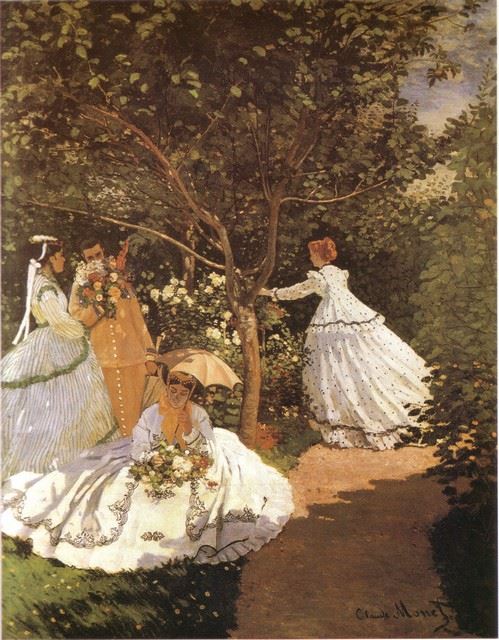 Artist: Claude Monet - Title: Femmes au Jardin 1867 - Medium: Fine Art Reproduction Giclee on Canvas - Image Size: Approximately 20 inches x 15.5 inches - Unframed on Unstretched Canvas - Biography: Claude Monet was born on November 14, 1840, in Paris, France. He enrolled in the Academy Suisse. After an art exhibition in 1874, a critic insultingly dubbed Monet's painting style "Impression," since it was more concerned with form and light than realism, and the term stuck. Monet struggled with depression, poverty and illness throughout his life. He died in 1926.