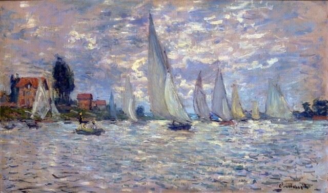 Artist: Claude Monet - Title: Les Barques - Medium: Fine Art Reproduction Giclee on Canvas - Image Size: Approximately 29.5 inches x 32 inches - Unframed on Unstretched Canvas - Biography: Claude Monet was born on November 14, 1840, in Paris, France. He enrolled in the Academy Suisse. After an art exhibition in 1874, a critic insultingly dubbed Monet's painting style "Impression," since it was more concerned with form and light than realism, and the term stuck. Monet struggled with depression, poverty and illness throughout his life. He died in 1926.
