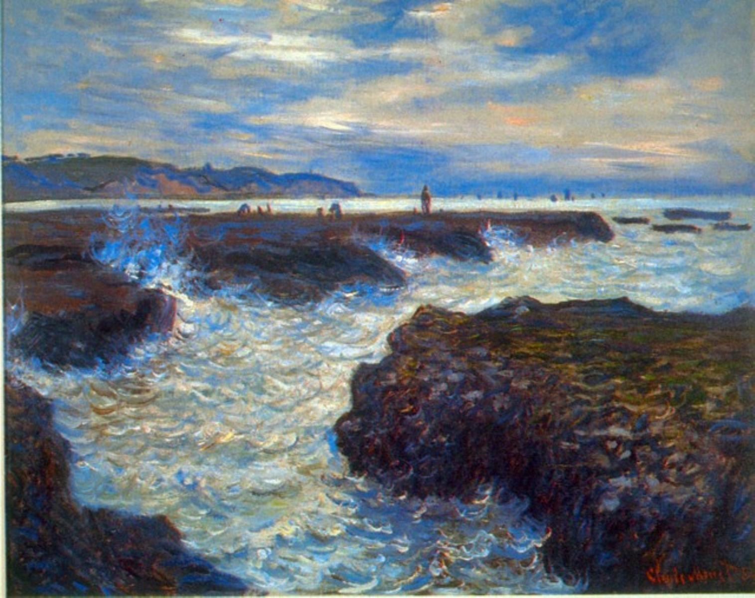 Artist: Claude Monet - Title: Pourville - Medium: Fine Art Reproduction Giclee on Canvas - Image Size: Approximately 25.25 inches x 32 inches - Unframed on Unstretched Canvas - Biography: Claude Monet was born on November 14, 1840, in Paris, France. He enrolled in the Academy Suisse. After an art exhibition in 1874, a critic insultingly dubbed Monet's painting style "Impression," since it was more concerned with form and light than realism, and the term stuck. Monet struggled with depression, poverty and illness throughout his life. He died in 1926.