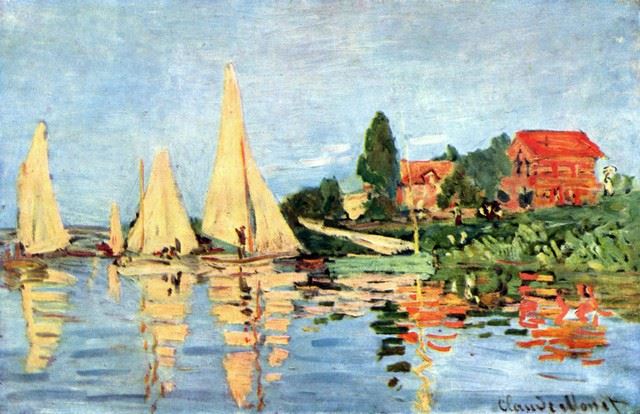 Artist: Claude Monet - Title: Regatta at Argenteuil - Medium: Fine Art Reproduction Giclee on Canvas - Image Size: Approximately 20.75 inches x 32 inches - Unframed on Unstretched Canvas - Biography: Claude Monet was born on November 14, 1840, in Paris, France. He enrolled in the Academy Suisse. After an art exhibition in 1874, a critic insultingly dubbed Monet's painting style "Impression," since it was more concerned with form and light than realism, and the term stuck. Monet struggled with depression, poverty and illness throughout his life. He died in 1926.