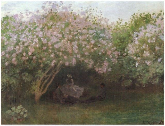 Artist: Claude Monet - Title: Repos Sous Les Lilas 1872 - Medium: Fine Art Reproduction Giclee on Canvas - Image Size: Approximately 24.5 inches x 32 inches - Unframed on Unstretched Canvas - Biography: Claude Monet was born on November 14, 1840, in Paris, France. He enrolled in the Academy Suisse. After an art exhibition in 1874, a critic insultingly dubbed Monet's painting style "Impression," since it was more concerned with form and light than realism, and the term stuck. Monet struggled with depression, poverty and illness throughout his life. He died in 1926.