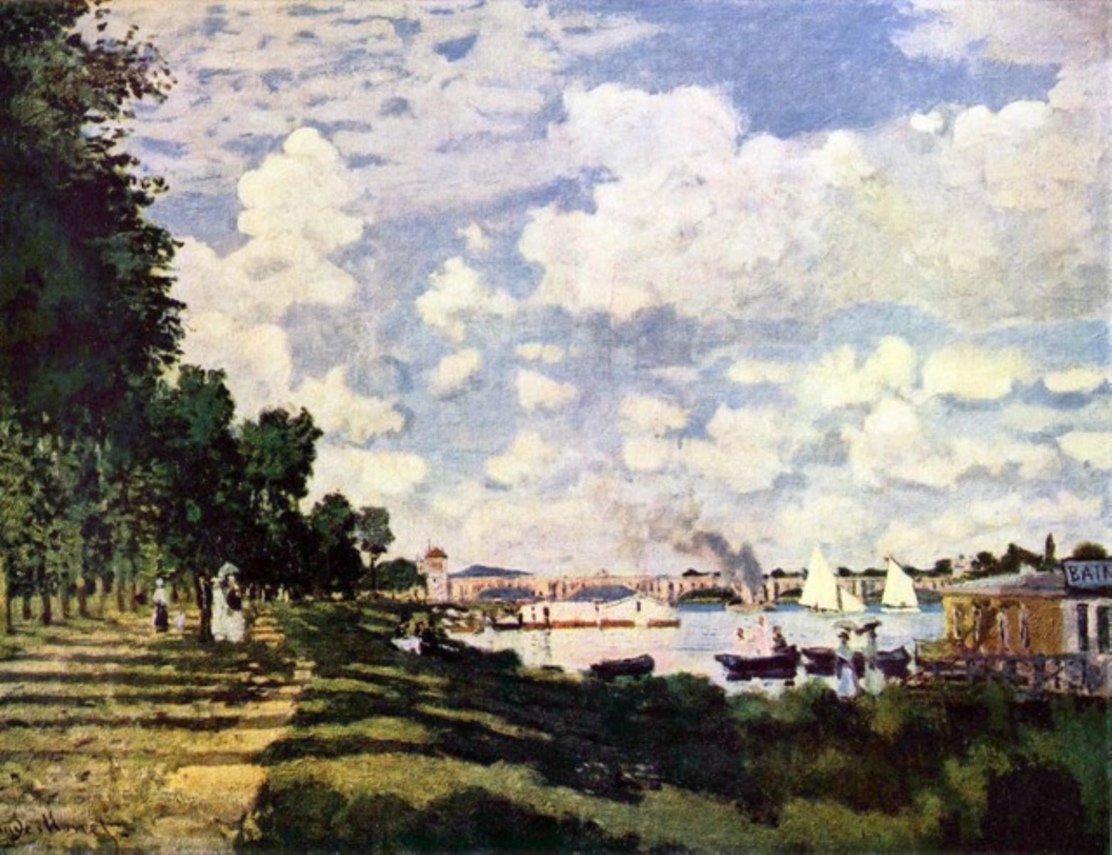 Artist: Claude Monet - Title: Seine Basin Near Argenteuil - Medium: Fine Art Reproduction Giclee on Canvas - Image Size: Approximately 24.5 inches x 32 inches - Unframed on Unstretched Canvas - Biography: Claude Monet was born on November 14, 1840, in Paris, France. He enrolled in the Academy Suisse. After an art exhibition in 1874, a critic insultingly dubbed Monet's painting style "Impression," since it was more concerned with form and light than realism, and the term stuck. Monet struggled with depression, poverty and illness throughout his life. He died in 1926.