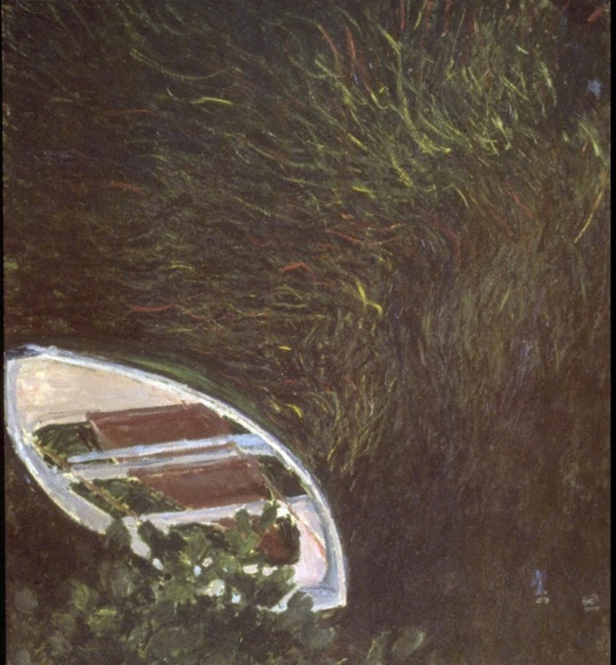 Artist: Claude Monet - Title: The Boat - Medium: Fine Art Reproduction Giclee on Canvas - Image Size: Approximately 32 inches x 29.75 inches - Unframed on Unstretched Canvas - Biography: Claude Monet was born on November 14, 1840, in Paris, France. He enrolled in the Academy Suisse. After an art exhibition in 1874, a critic insultingly dubbed Monet's painting style "Impression," since it was more concerned with form and light than realism, and the term stuck. Monet struggled with depression, poverty and illness throughout his life. He died in 1926.