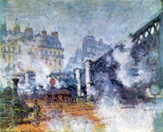 Artist: Claude Monet - Title: The Europe Bridge Saint Lazare Station in Paris - Medium: Fine Art Reproduction Giclee on Canvas - Image Size: Approximately 16.25 inches x 20 inches - Unframed on Unstretched Canvas - Biography: Claude Monet was born on November 14, 1840, in Paris, France. He enrolled in the Academy Suisse. After an art exhibition in 1874, a critic insultingly dubbed Monet's painting style "Impression," since it was more concerned with form and light than realism, and the term stuck. Monet struggled with depression, poverty and illness throughout his life. He died in 1926.