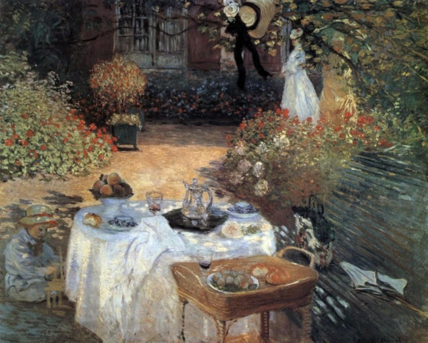 Artist: Claude Monet - Title: The Lunch #2 - Medium: Fine Art Reproduction Giclee on Canvas - Image Size: Approximately 25.75 inches x 32 inches - Unframed on Unstretched Canvas - Biography: Claude Monet was born on November 14, 1840, in Paris, France. He enrolled in the Academy Suisse. After an art exhibition in 1874, a critic insultingly dubbed Monet's painting style "Impression," since it was more concerned with form and light than realism, and the term stuck. Monet struggled with depression, poverty and illness throughout his life. He died in 1926.