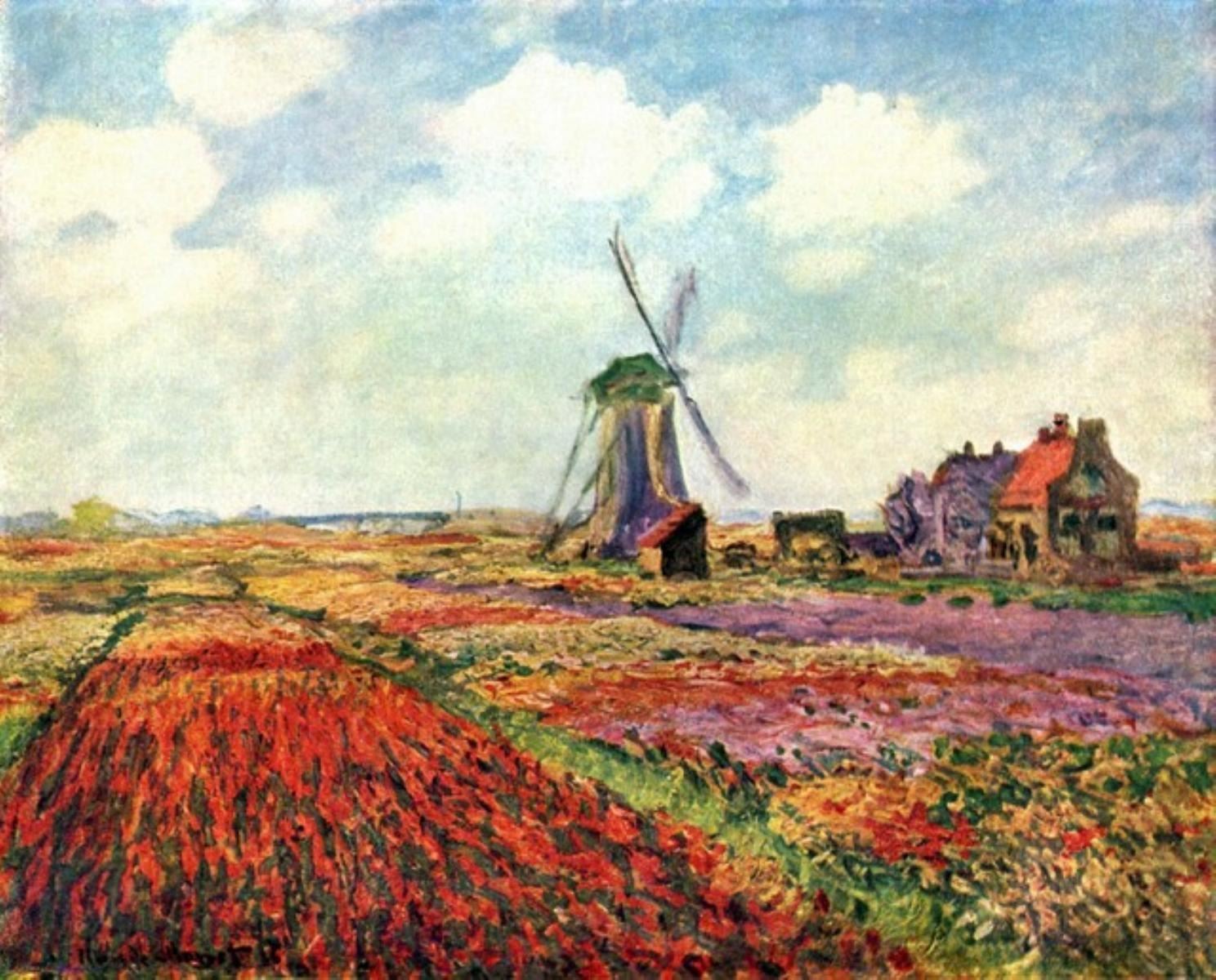 Artist: Claude Monet - Title: Tulips of Holland - Medium: Fine Art Reproduction Giclee on Canvas - Image Size: Approximately 25.75 inches x 32 inches - Unframed on Unstretched Canvas - Biography: Claude Monet was born on November 14, 1840, in Paris, France. He enrolled in the Academy Suisse. After an art exhibition in 1874, a critic insultingly dubbed Monet's painting style "Impression," since it was more concerned with form and light than realism, and the term stuck. Monet struggled with depression, poverty and illness throughout his life. He died in 1926.
