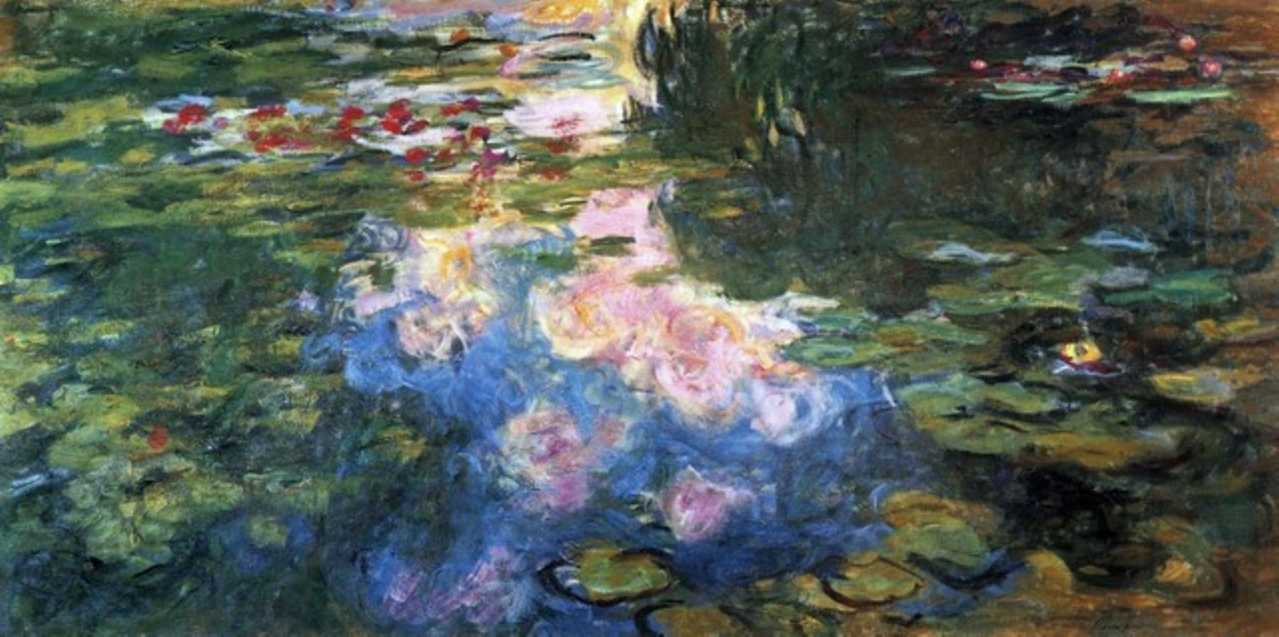 Artist: Claude Monet - Title: Water Lillies # 4 - Medium: Fine Art Reproduction Giclee on Canvas - Image Size: Approximately 10 inches x 20 inches - Unframed on Unstretched Canvas - Biography: Claude Monet was born on November 14, 1840, in Paris, France. He enrolled in the Academy Suisse. After an art exhibition in 1874, a critic insultingly dubbed Monet's painting style "Impression," since it was more concerned with form and light than realism, and the term stuck. Monet struggled with depression, poverty and illness throughout his life. He died in 1926.