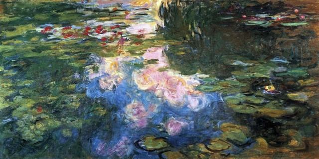 Artist: Claude Monet - Title: Water Lillies # 4 - Medium: Fine Art Reproduction Giclee on Canvas - Image Size: Approximately 16 inches x 32 inches - Unframed on Unstretched Canvas - Biography: Claude Monet was born on November 14, 1840, in Paris, France. He enrolled in the Academy Suisse. After an art exhibition in 1874, a critic insultingly dubbed Monet's painting style "Impression," since it was more concerned with form and light than realism, and the term stuck. Monet struggled with depression, poverty and illness throughout his life. He died in 1926.