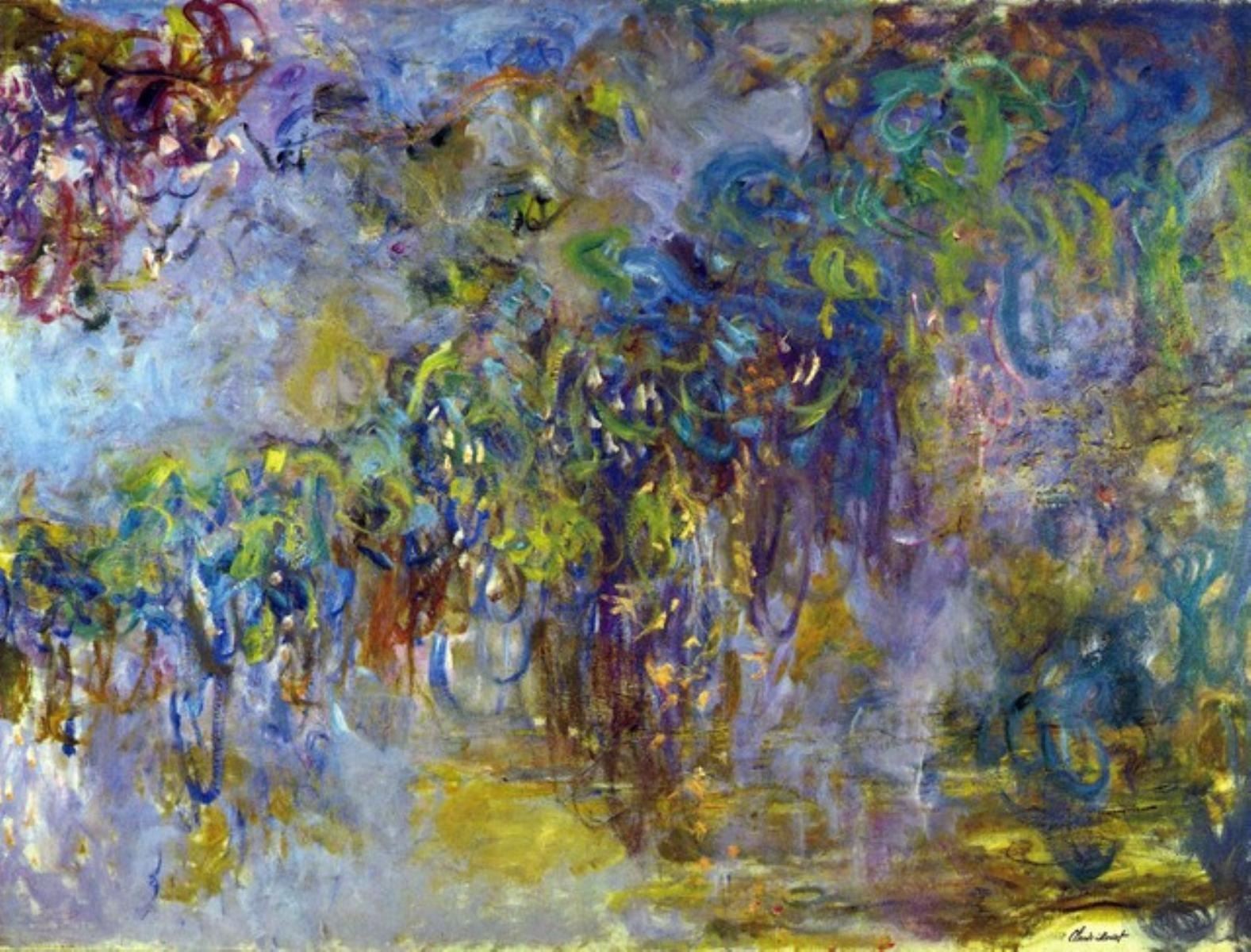 Artist: Claude Monet - Title: Wisteria [2] - Medium: Fine Art Reproduction Giclee on Canvas - Image Size: Approximately 24.25 inches x 32 inches - Unframed on Unstretched Canvas - Biography: Claude Monet was born on November 14, 1840, in Paris, France. He enrolled in the Academy Suisse. After an art exhibition in 1874, a critic insultingly dubbed Monet's painting style "Impression," since it was more concerned with form and light than realism, and the term stuck. Monet struggled with depression, poverty and illness throughout his life. He died in 1926.
