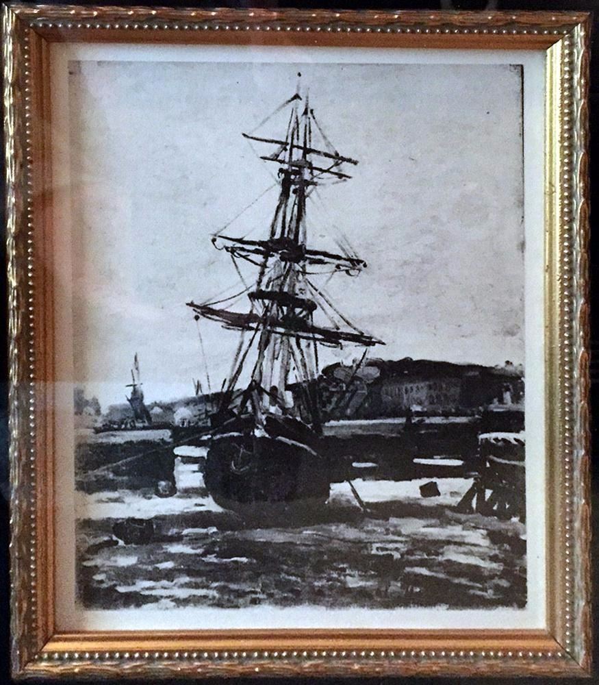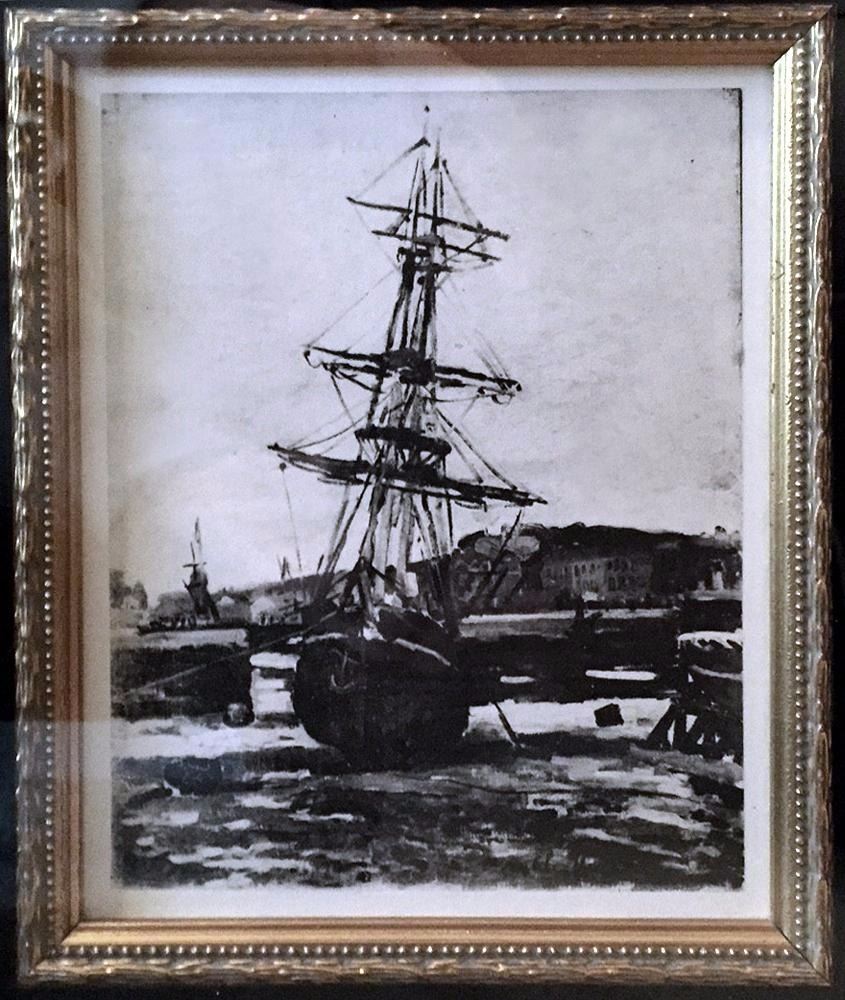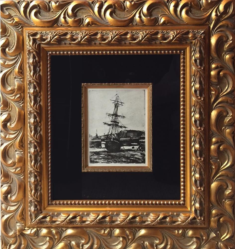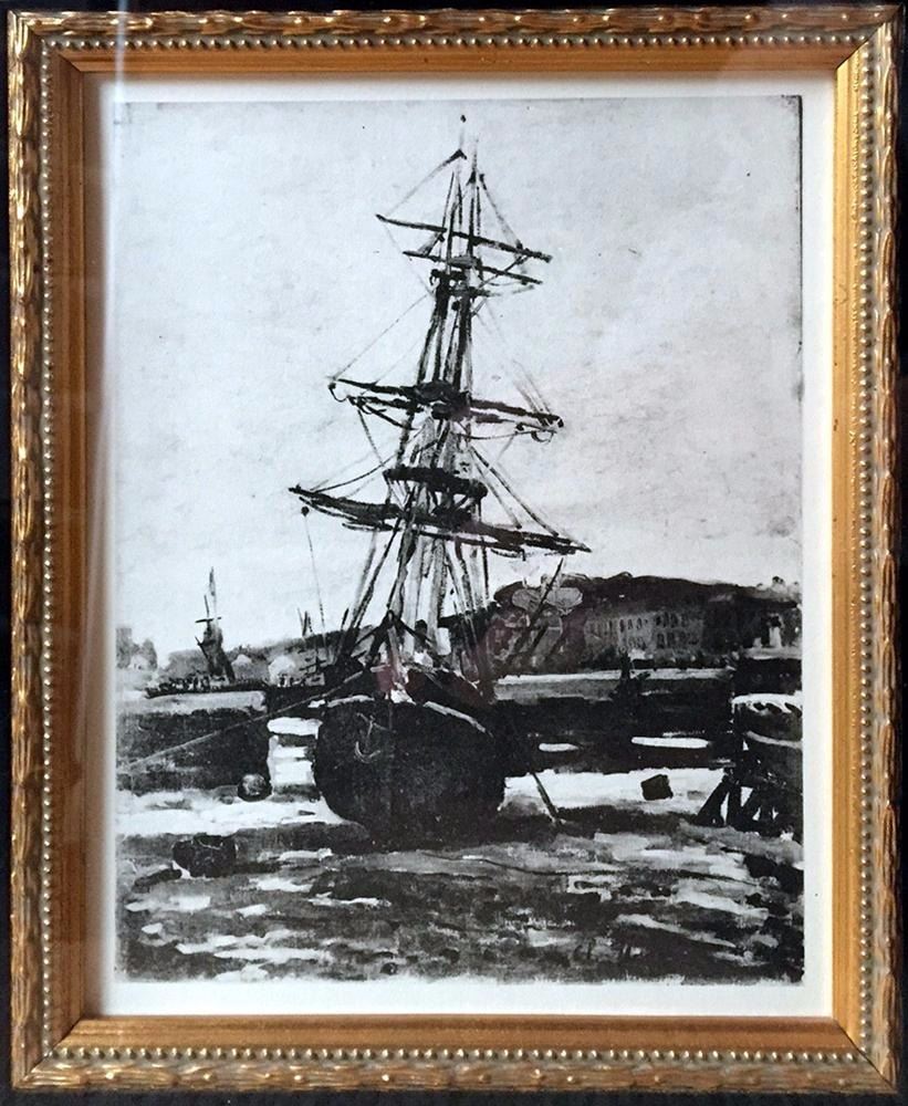 Claude Monet | Title of Art: Bateau Echoue Fecamp | Medium: Copper Plate Engraving on Japon paper. Executed under the direct supervision of Claude Monet. | Edition #: First State. One of 25 examples printed in the Atelier of Moderne Imprimerie in Paris on the 15th November 1924. | Unframed Size: 7 x 5 1/2 | Framed Size: 21 x 19