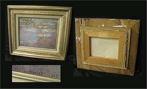 Claude Monet print on canvas waterlillies with willow branches. Measures 13 1/2" x 15 1/4" Canvas has small rip to one corner