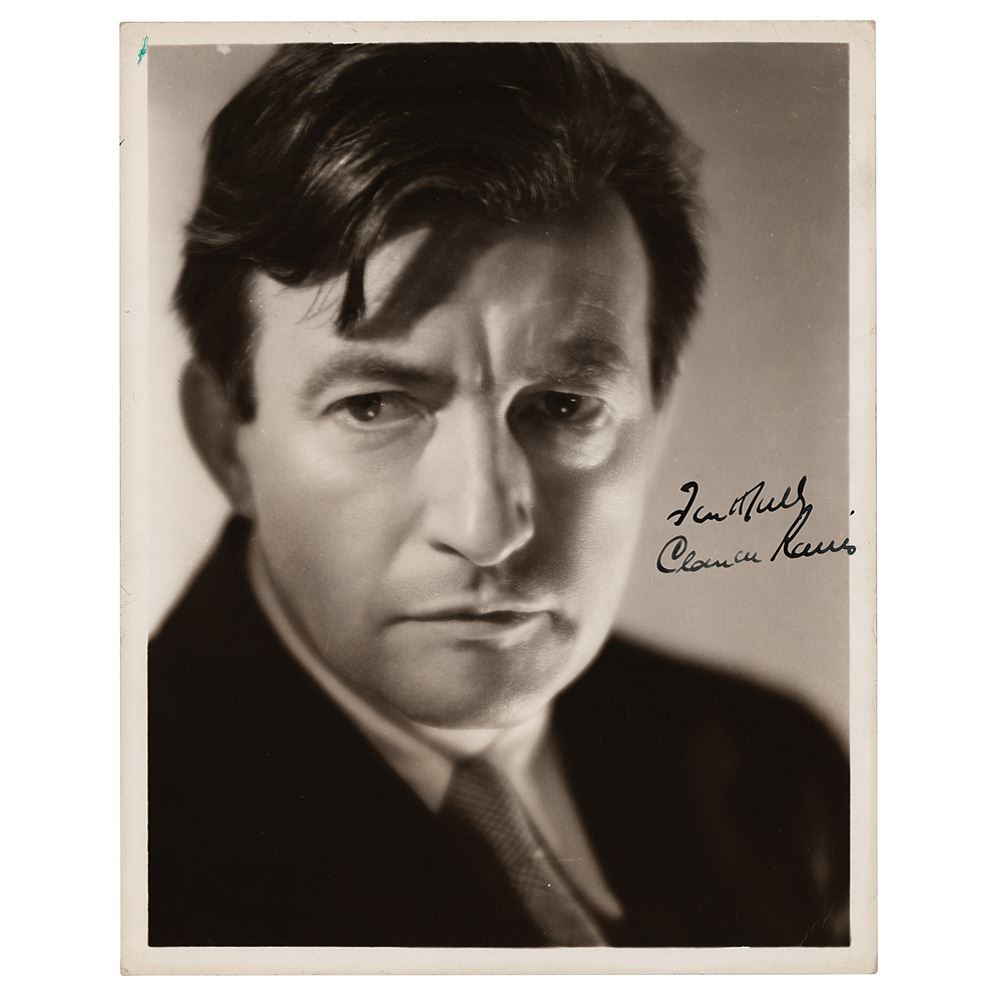 Appealing vintage glossy 8 x 10 silver gelatin photo of the revered British actor in intense close-up, signed in fountain pen, "Faithfully, Claude Rains." Collector's notations to the reverse date the autograph to Universal Studios on February 14, 1934. In very good to fine condition, with light corner creasing.