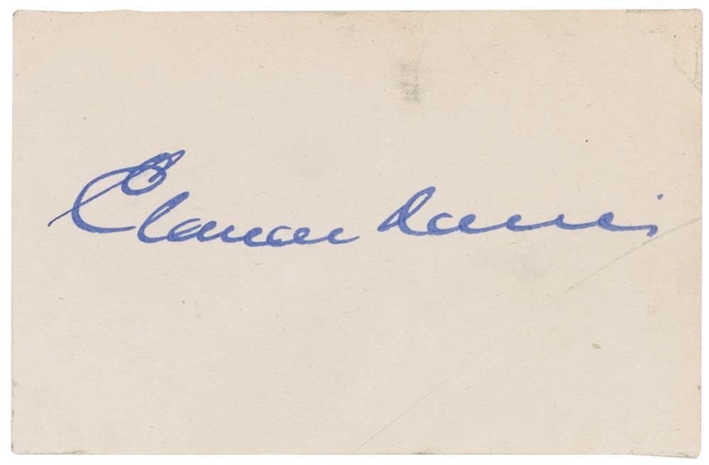 Vintage fountain pen signature, “Claude Rains,” on a 3.5 x 2.5 card. In fine condition, with some scattered light soiling.