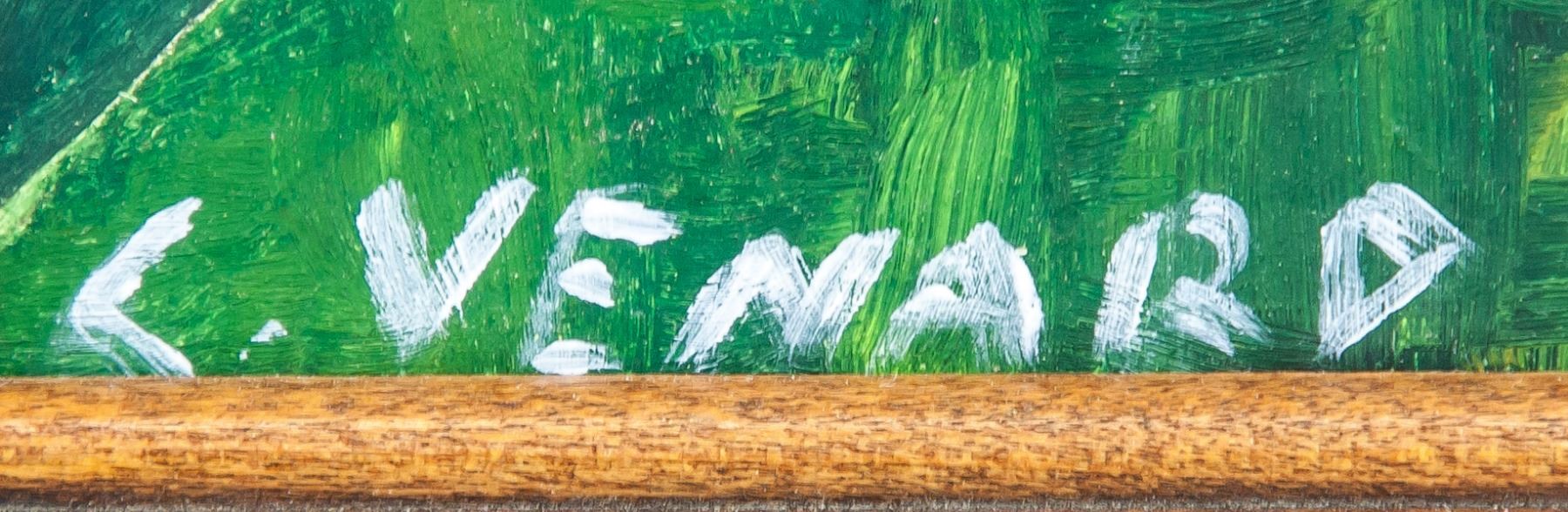 Oil on board, newly framed. Featuring a landscape scene. Signed C VENARD on the lower left corner. Attributed to Claude Venard (1913-1999, French). 19 x 14 cm (7.5 x 5.5 inches). Frame size: 24 x 19.5 cm (9.5 x 7.7 inches). PROVENANCE: Southern Ontario estate